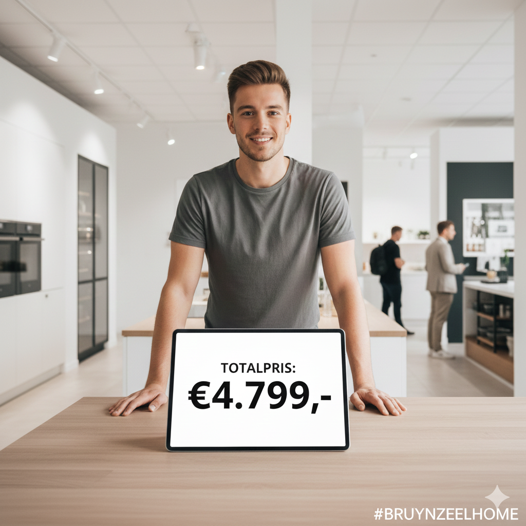 Je bent actief keukens aan het vergelijken en je voelt die angst: verborgen kosten die de rekening verdubbelen. Wij snappen die stress. Onze ‘Eerlijke Prijs’ is onze garantie: Bruynzeel toont de prijs direct, inclusief montage en levering. Zo pak je de budgetcontrole terug, zonder verrassingen. Je weet 100% zeker wat je betaalt. Stop met stressen, begin met vergelijken!