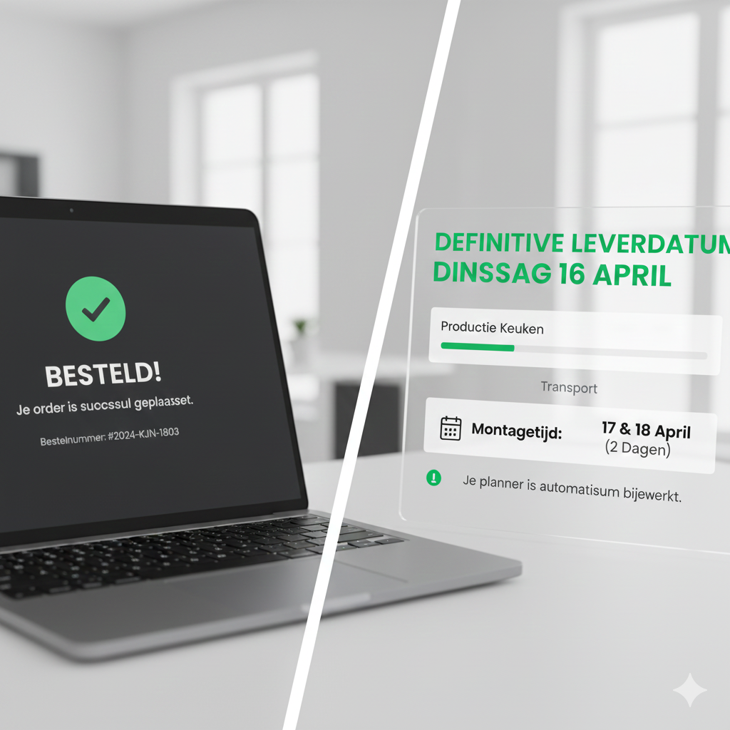 Na het vastleggen van de Eerlijke Prijs, verwacht je dat het proces minstens zo efficiënt verloopt. Traditioneel is de periode tussen aankoop en montage gevuld met onzekerheid: wanneer wordt er precies geleverd? Wie monteert de keuken? Quickeuken elimineert deze frictie. Zodra je de aankoop digitaal hebt bevestigd, neemt onze AI-planner het over. Dit systeem is ontworpen om direct jouw bestelling in te passen in de snelst mogelijke lever- en montagetijd.